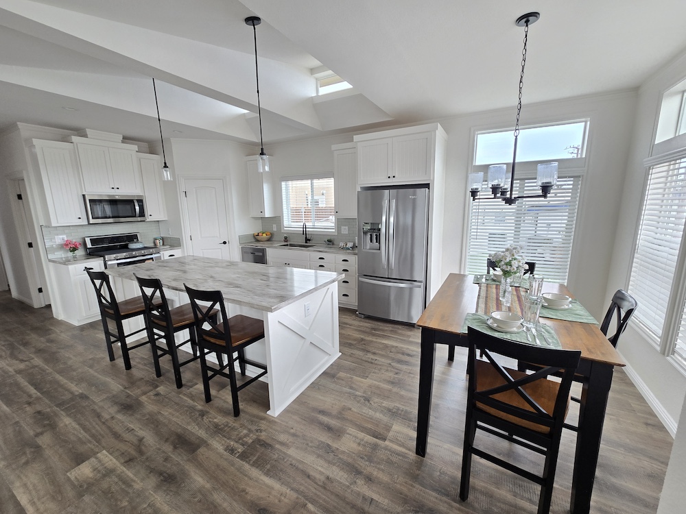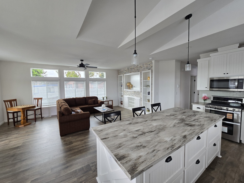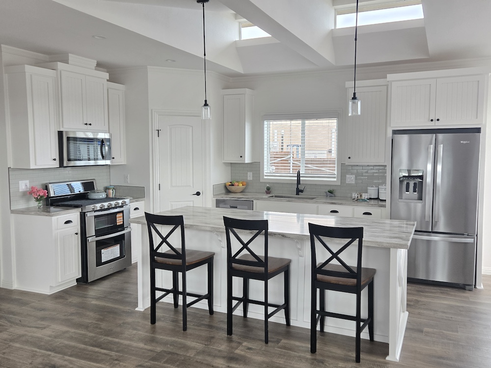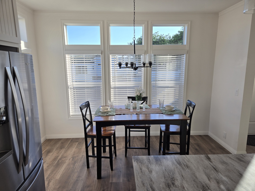 Tons Of Storage, 9′ Flat Ceilings, Stainless Appliances, Open Concept, Large Dining Area, Clerestory Windows In Kitchen, Solar Tube, Corian Counters, WUI Compliant, No Fire Sprinklers